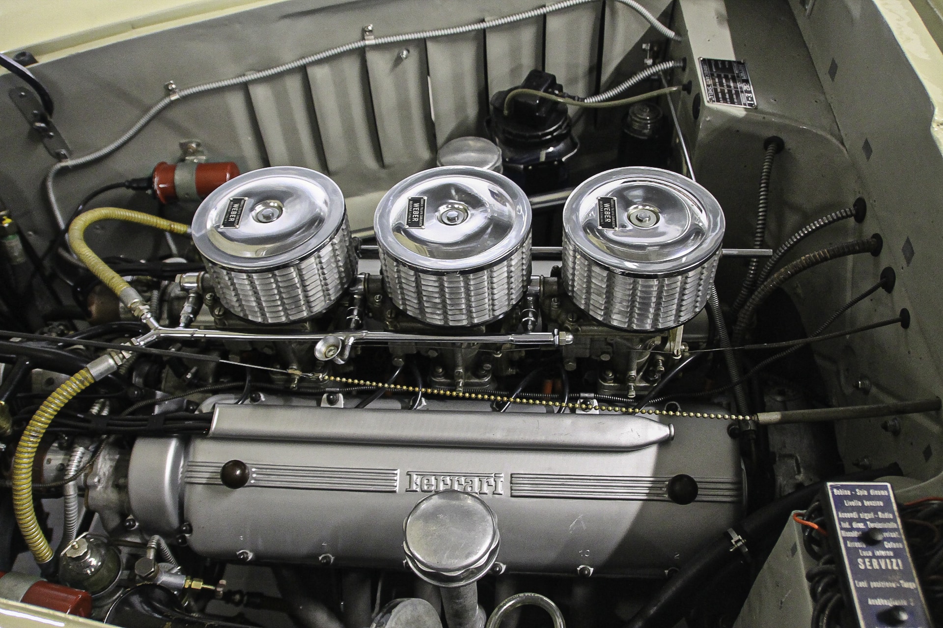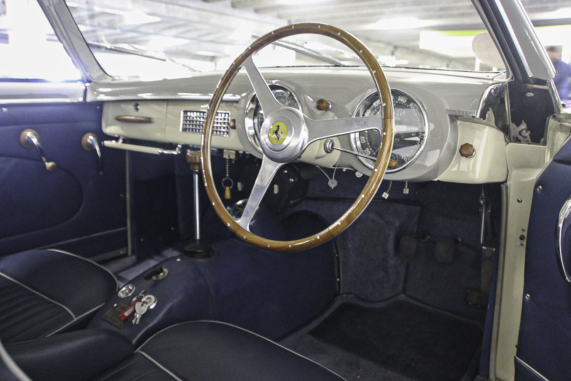 This particular car, the Ferrari 212 Inter Vignale Coupe Chassis No. 0221EL, is very special for several reasons. Firstly, the FERRARI Build Sheet (Foglio de Montaggio) strongly indicates that 0221EL was ordered with competition in mind. This is emphasized by the wheelbase of 2500 mm (2600 mm for road cars) and by the tuned engine with 3 Weber DCF / 3 carburettors and 170 hp (the simple variant had only 1 single carburetor). Secondly, while some of the Vignale Coupé designs can be a bit “wild” at times; This example has extremely beautiful and elegant Vignale design features, which are accentuated by the very special two-tone color combination of gray over beige. Third, 0221EL has an extraordinary ownership history. Originally delivered to Swiss enthusiast Eugene Lanz on August 11, 1952 (remarkably the original FERRARI certificate of origin signed by Enzo Ferrari still exists), 0221EL was driven extremely hard in its early years, so much so that it was in 1963 in such ' It was in such a worn condition that the owner sold 0221EL to Mr Messerli from Kaufdorf. Mr. Messerli was a salvage dealer, but he had a strong preference for the 0221EL, as well as a plan to preserve and eventually restore the car for his personal use. Mr. Messerli never got around to his plans, and it so happened that the car was totally forgotten on his property for the incredible period of 40 years (!) until a German enthusiast turned up in 2003 and made a very substantial offer, selling Mr. Messerli the car and put an end to his lifelong dream. After a careful restoration by the German specialist Methusalem, while retaining the beautiful original interior, the 0221EL returned to its original glory.